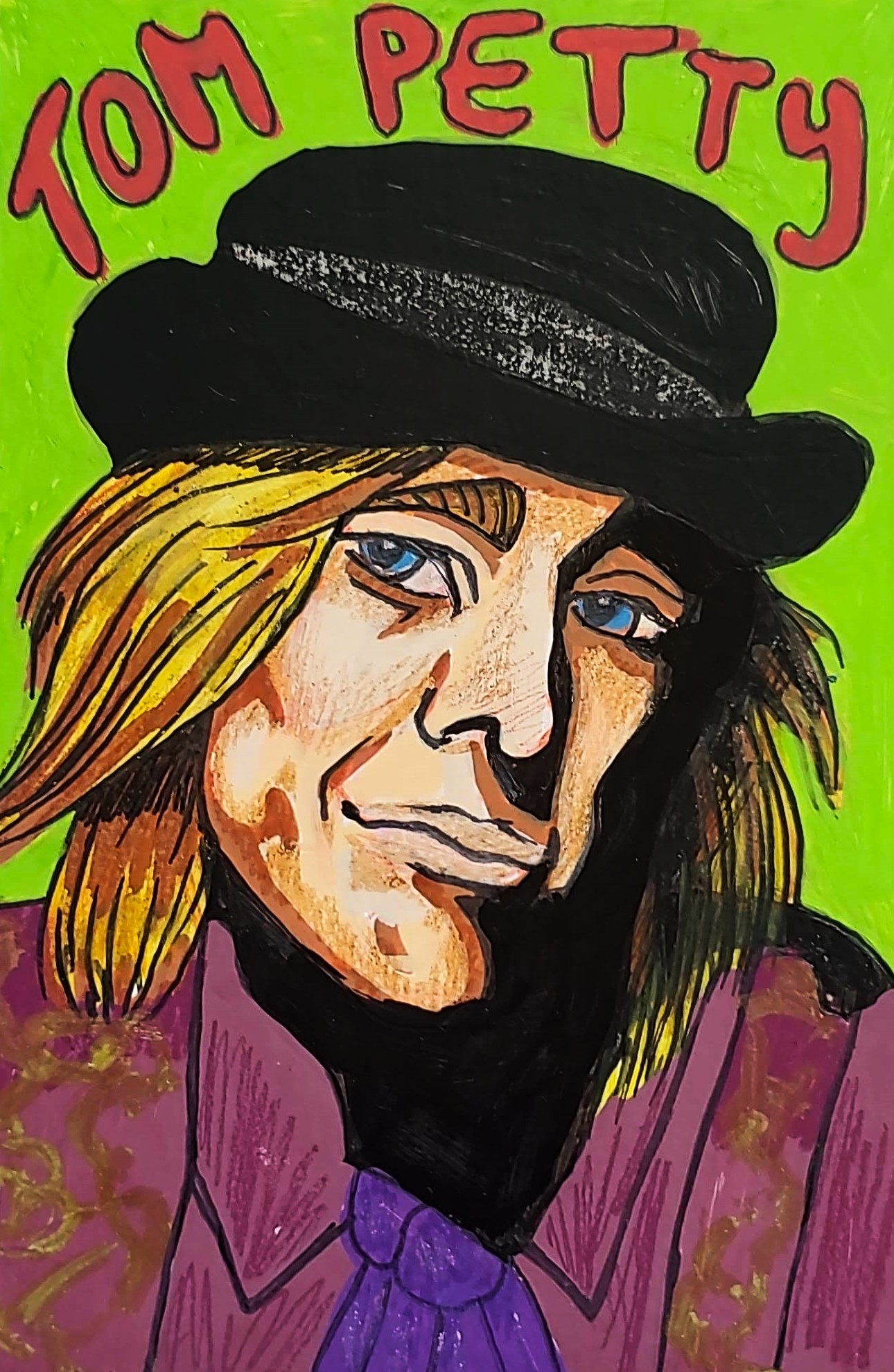 Tom Petty Tom Petty of Tom Petty and the Heartbreakers Medium: Acrylic and Colord Pencil on Cardboard